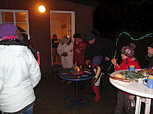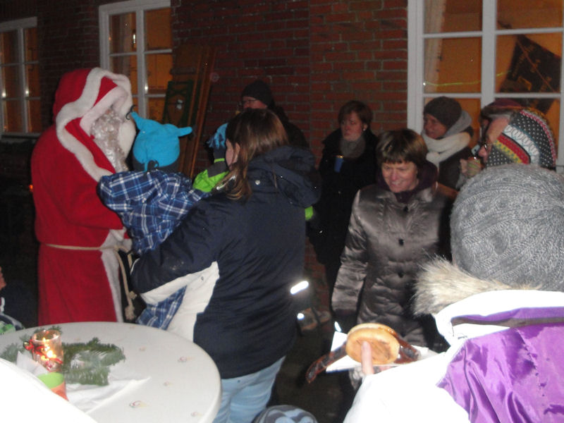 Kurz vor Weihnachten kam der Weihnachtsmann zu allen Kindern und Erwachsenen nach Süderende. Wegen des kalten Ostwindes wurde das Fest auf die Terrasse des Feuerwehrgerätehauses verlegt. Hier konnte man sich bei Punsch und Bratwurst aufwärmen. Abgerundet wurde das Ganze durch weihnachtliche Musik von Conny.