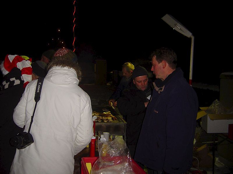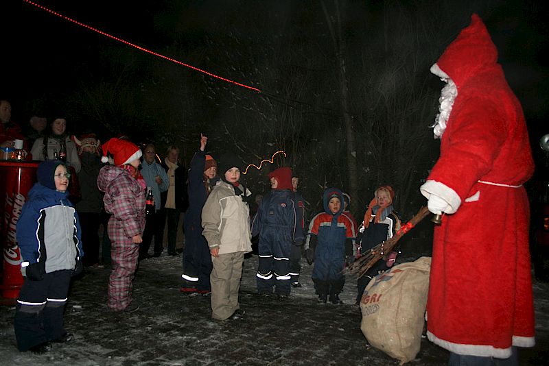 Bei Punsch, Bratwurst und Weihnachtsmusik konnte das herrliche Winterwetter genossen werden. Da es in Süderende nur artige Kinder gibt, konnte der Weihnachtsmann allen ein kleines Präsent überreichen und brauchte die Rute nicht zu zücken.