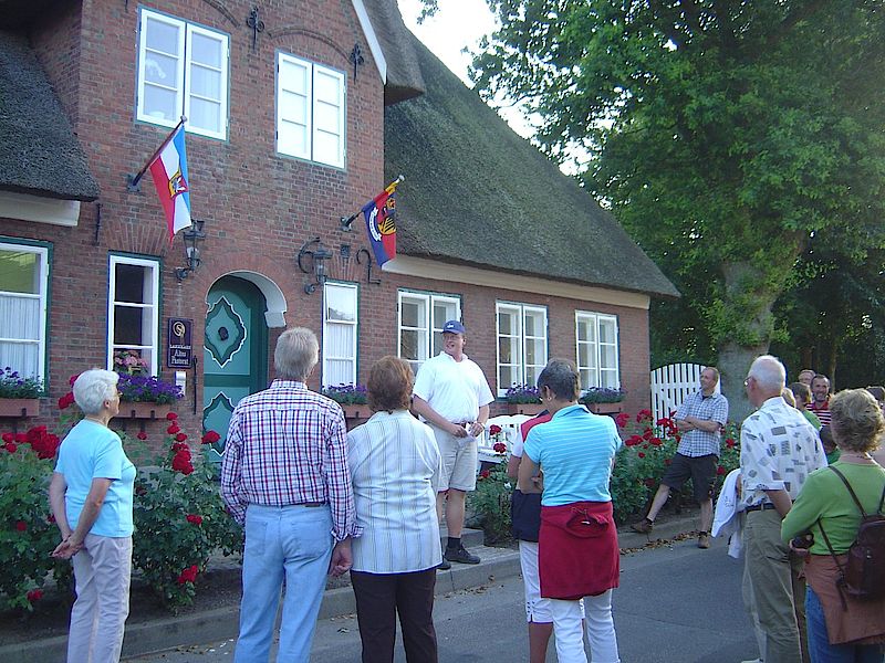 Am 16.07.09 gab es erstmals eine Dorfführung in Süderende. Ralf Brodersen führte mit viel Fachwissen und interessanten Geschichten über das alte Friesendorf die Besucher durch Süderende. Ob über das "Alte Pastorat" oder alte Seefahrerhäuser, es gab viele interessante Infos an diesem Abend.