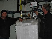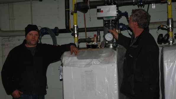 Als erster Kunde wird die Schule in Süderende mit Wärme von der Energiegenossenschaft Föhr versorgt. Die Arbeiten in der Heizzentrale in der Schule sind weit fortgeschritten und die erste Gastherme wurde in Betrieb genommen. Bis Mitte Mai soll auch das Blockheizkraftwerk (BHKW) eingebaut sein und Wärme und Strom produzieren, sodass dann auch die ersten Privathäuser aus dem genossenschaftlichen Netz versorgt werden können.