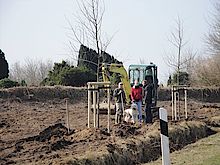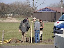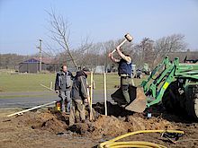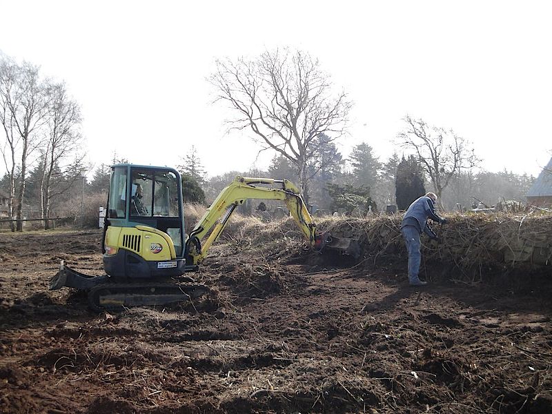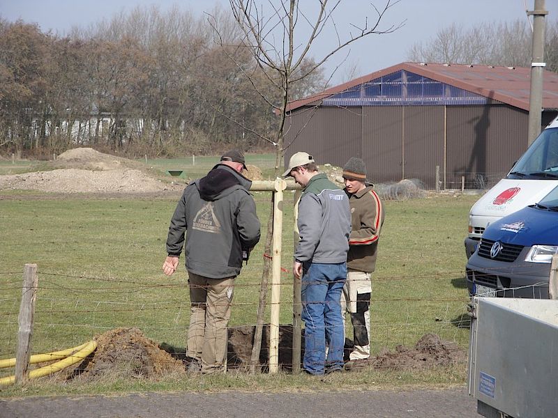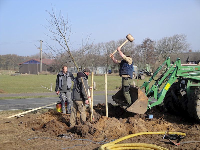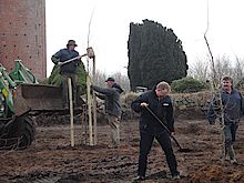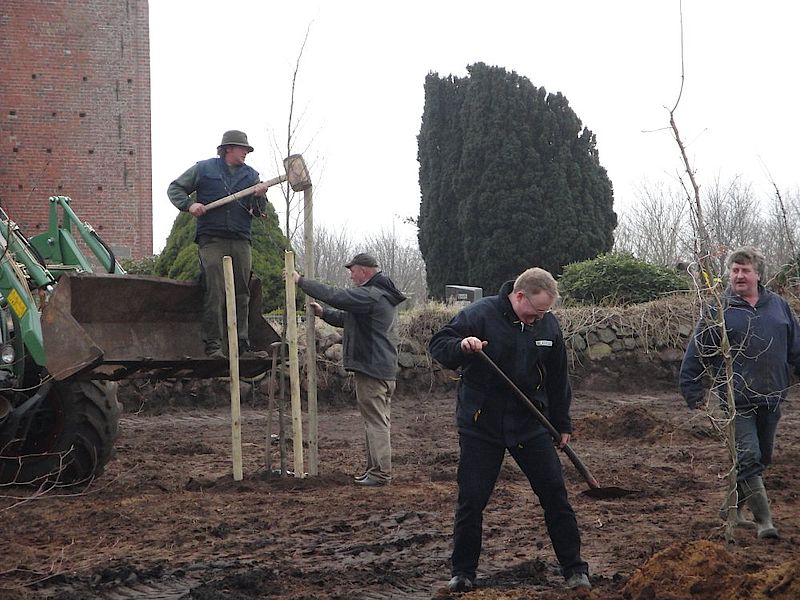 Pünktlich vor dem Osterfest konnte mit den Neuanpflanzungen auf dem Gelände vor der Kirche begonnen werden. Freiwillige Helfer aus der Gemeinde fassten bei schönem Wetter tatkräftig mit an und so war am Abend schon das meiste geschafft. Abgerundet wird die Ansicht mit Schwedischen Mehlbeeren, die als Allee am Straßenrand gepflanzt wurden - gestiftet von der Firma Fielmann.