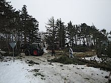 Der Anfang ist getan! Um die Fläche nördlich der Kirche neu zu gestalten waren viele Helfer gekommen, um sämtliche alten Bäume zu fällen. Im Frühjahr soll an dieser Stelle eine Grünfläche mit neuen Bäumen angelegt werden. Bereits am Abend konnte man die freie Sicht auf die Kirche genießen.