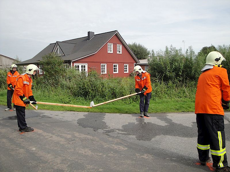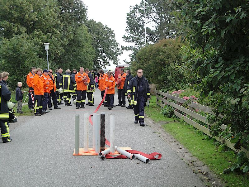 Der diesjährige "Spaßpokal" der Inselwehren wurde von der Freiwilligen Feuerwehr Oldsum ausgetragen. Bereits zum zweiten Mal konnte unsere Feuerwehr den Pokal mit nach Hause nehmen. Ob beim Schlauchzielwurf, Wassertransport, Blindenparcours oder der traditionellen Angriffsübung, unsere Männer waren stets mit vollem Eifer dabei!