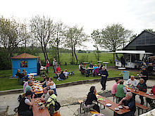Schönes Wetter, Kaffee und Kuchen, Waffeln, Grillwurst und Bier, sowie Kinderspiele und Hüpfburg lockten viele Besucher in die Heuherberge.